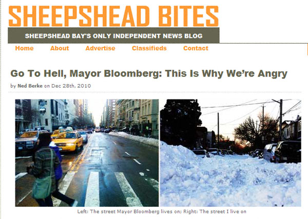 Onto the blame game. Lots of rumors about a work slow down by NY's Strongest. I have to say, I'm not buying it. If the previously mentioned Upper East Side looked like the rest of the boroughs I might be convinced. But I can't imagine Sanitation doing such a bang up job in Manhattan while leaving their own homes & families with un-plowed streets, because let's face it our Sanitation workers are not living in Manhattan. They and their families are in the outer boroughs suffering without services like the rest of us.